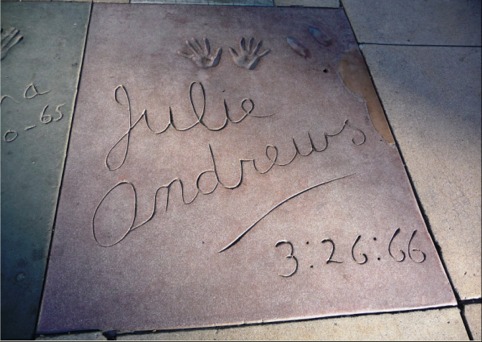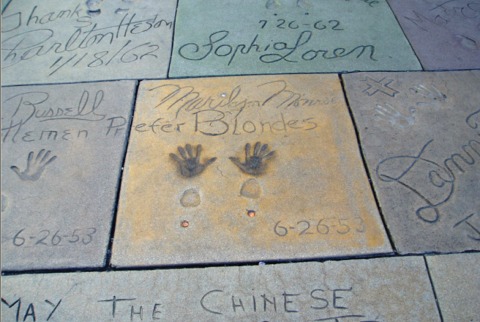 En el exterior del edificio, se encuentran impresionadas las huellas de pies y manos de multitud de artista a los que se rinde homenaje de esta manera |