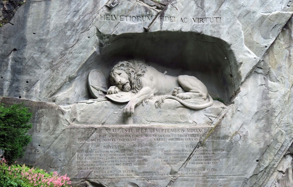 A unos diez minutos a pie del centro histórico, encontrarás el Monumento al León, otro de los símbolos de Lucerna. Se trata de una escultura labrada en una pared de roca por Bertel Thorvaldsen entre 1819 y 1821. Se creó en honor a los 760 mercenarios de la Guardia Suiza que en 1792 murieron en el asalto al Palacio de las Tullerías, durante la Revolución Francesa.