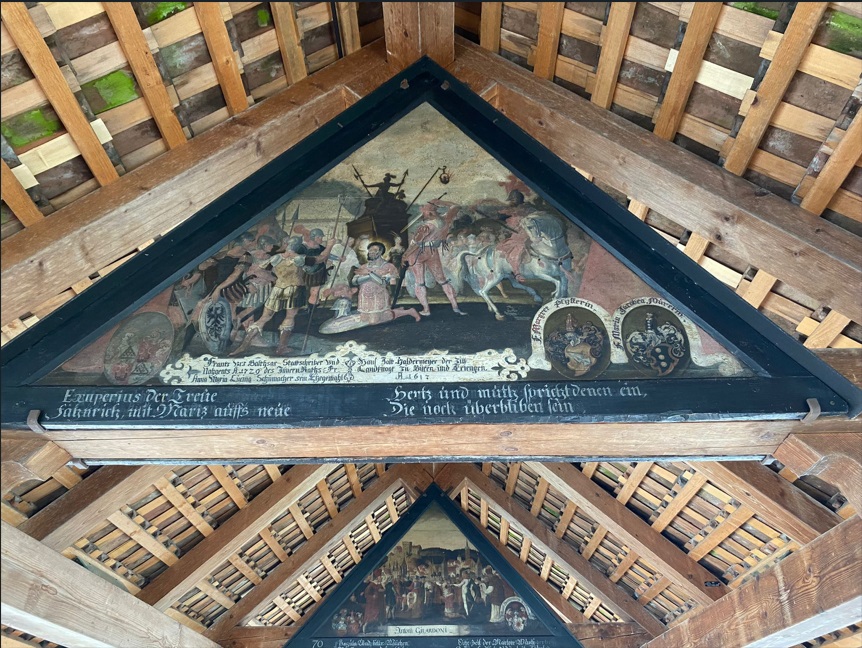 Personalmente, se acaba de convertir en uno de mis puentes favoritos en el mundo. Las pinturas que adornan su interior son simplemente maravillosas. Las pinturas triangulares que decoran el puente se añadieron en el siglo XVII. Inicialmente, fueron 158 obras de Hans Heinrich Wägmann que ilustraban episodios de la historia de Lucerna. Lamentablemente, un incendio en 1993 destruyó muchas de estas pinturas originales, en un evento trágico que casi acaba con el puente completo.