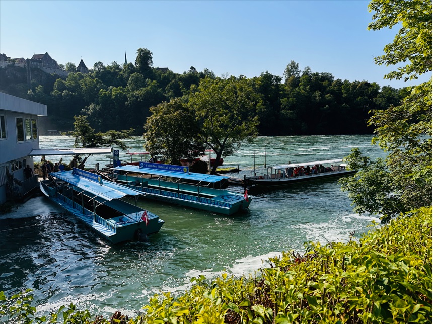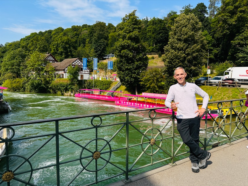 Hoy, salida hacia Schaffhausen. La ciudad de Schaffhausen se encuentra en el rincón más septentrional de Suiza en la así llamada "rodilla del Rin" en la Suiza oriental, en la frontera a Alemania. Debe su origen al salto de agua del Rin. De hecho es el propósito principal de ir a esta ciudad, dar un paseo en barco para contemplar las catarátas del Rin, cuya cascada es tan hermosa como espectacular. Sentir el estrépito del agua, que se ve, se oye y se manifiesta aquí.