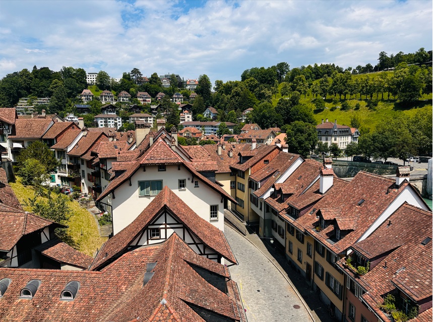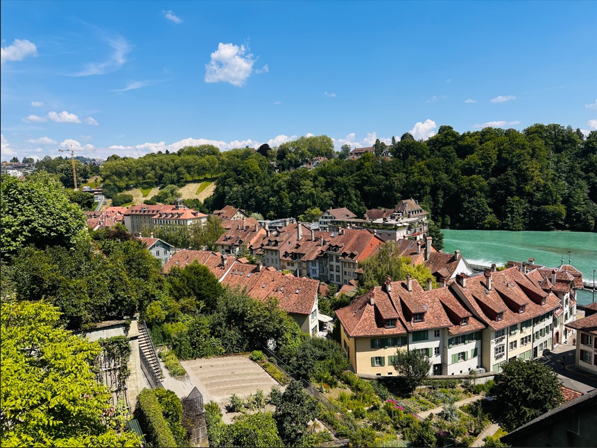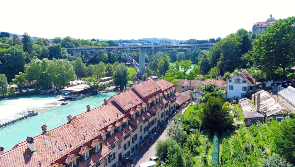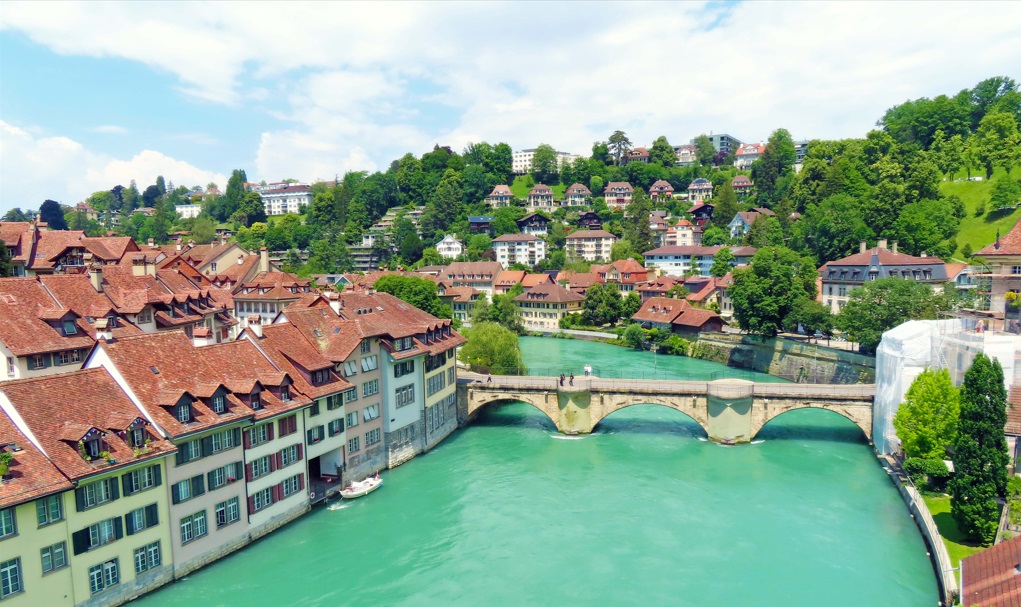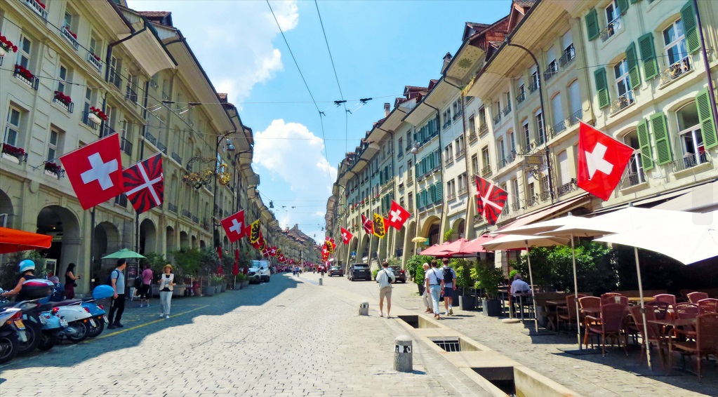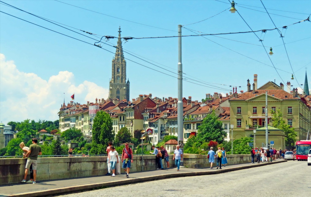 Continuación hacia Berna. Apenas hay en Suiza, una ciudad, como Berna, que logró conservar sus características históricas, y es la capital de Suiza. El casco antiguo de Berna es Patrimonio Mundial de la UNESCO, Pasear por la calle Kramgasse, el corazón del casco antiguo, contando con 6 kilómetros de arcadas, las así llamadas "Lauben", es uno de los paseos de compras más largos y protegidos contra la intemperie de Europa. Tan pronto llegas, lo primero que ves es su Caso Antiguo y el Río Aare.