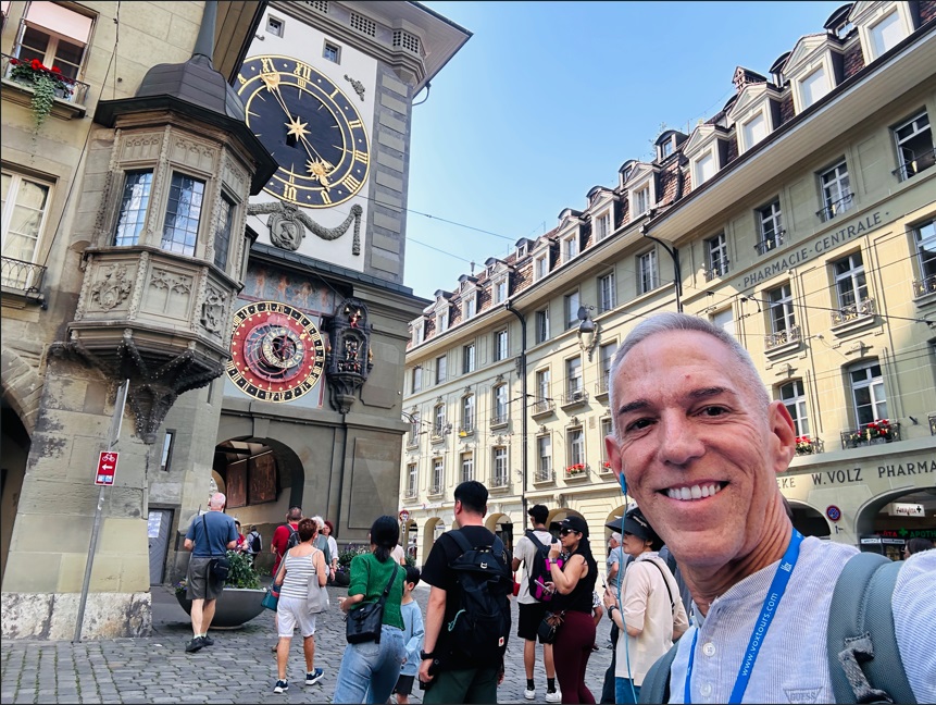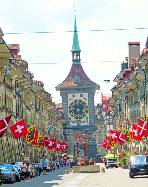 La Torre del Reloj o Zytgloggeturm, situada al principio de la calle Kramgasse, se comienza er lo lejos, y es otro de los lugares que visitar en Berna imprescindibles. Esta torre medieval, construida entre 1191 y 1256, fue la primera puerta occidental de la ciudad y se utilizó como cárcel de mujeres hasta que se quemó en 1405 para en 1540 incorporar el reloj del calendario astronómico y un juego de figuras, formando un carillón que se empiezan a mover tres minutos antes de cada hora.