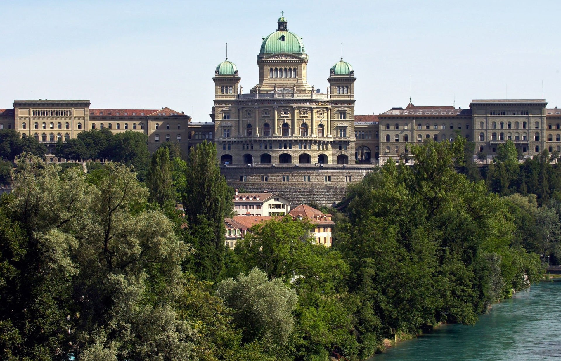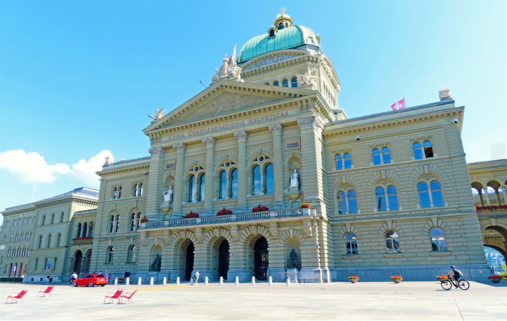 A solo pocos pasos de la estación principal de ferrocarril se halla el edificio impresionante del "Bundeshaus". El Palacio Federal de Suiza que es un edificio institucional de Suiza que alberga la sede del Gobierno (Consejo Federal) y de la Asamblea Federal (Consejo Nacional de Suiza y del Consejo de los Estados) y se sitúa en la Plaza Federal de Berna.
