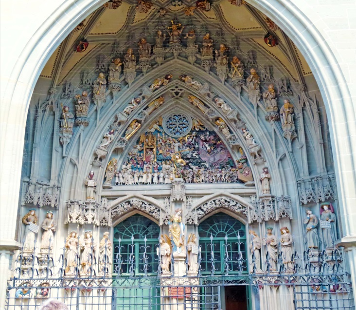 La Catedral es la iglesia más alta de Suiza, con una torre de más de 100 metros de altura y es otro de los lugares que ver en Berna. Este edificio de estilo gótico tardío, empezó a construirse en 1421 y no se terminó hasta el 1893 donde antes de entrar en el interior, te recomiendo observar durante unos minutos el fantástico portal con una representación del Juicio Final. Desde el interior no puedes retratar. Solo seis de cada diez suizos son católicos o protestantes. Ha aumentado el número de iglesias libres. Uno de cada veinte habitantes profesa el Islam. Por ejemplo, en la ciudad de Berna, tan solo en los últimos treinta años el número de protestantes se ha reducido en más de un tercio. Hay personas que dicen que si no se hace nada, el capital propio se agotará rápidamente y la Iglesia irá camino de la quiebra.
