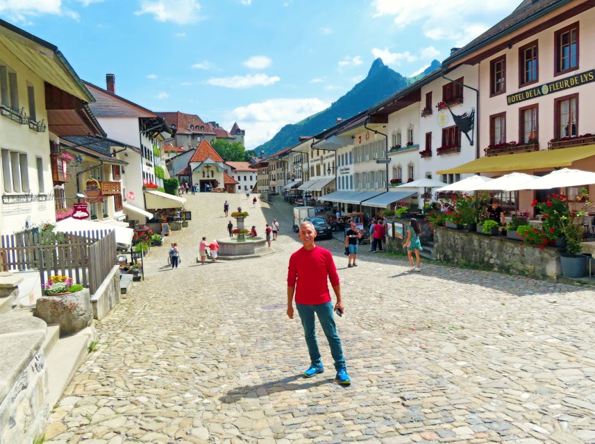 Hoy la salida es hacia Ginebra vía Mountbovon. Pero antes, una parada técnica en La Gruyère. De la región de La Gruyère con sus colinas verdes y los picos de los Alpes de Friburgo proviene el famoso queso de Gruyère. En una pequeña colina se halla la pequeña y pintoresca ciudad medieval de Gruyères.