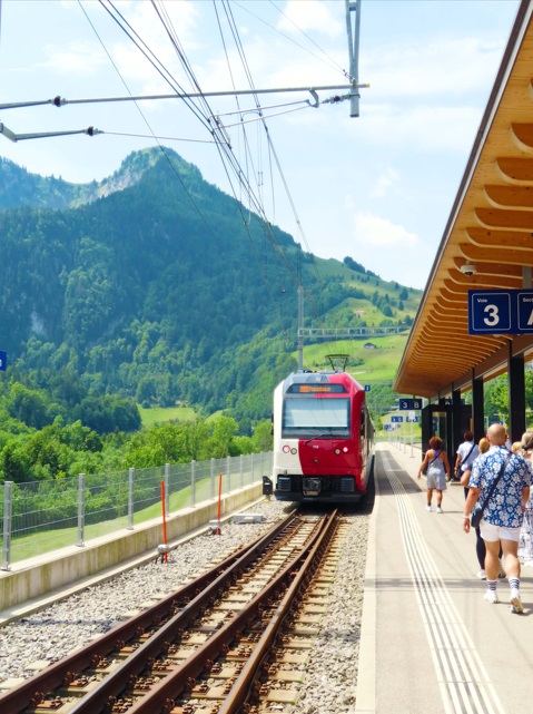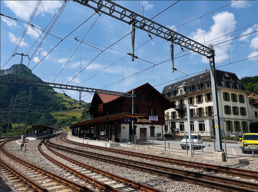 Mountbovon, este pequeño pueblo es el lugar de grandes cadenas de trenes, en nuestro caso tomamos el tren "Golden Pass" que nos llevará desde Mountbovon hasta Montreux. Esta novedad mundial redefine la experiencia de viajar entre Interlaken y Montreux. El nuevo tren panorámico conecta los dos populares centros turísticos hasta cuatro veces al día. El Golden Pass Express ofrece una experiencia de viaje fluida y aún más cómoda en una de las rutas ferroviarias más bellas de Suiza, en todo momento ofrecerá impresionantes vistas de un paisaje deslumbrante.