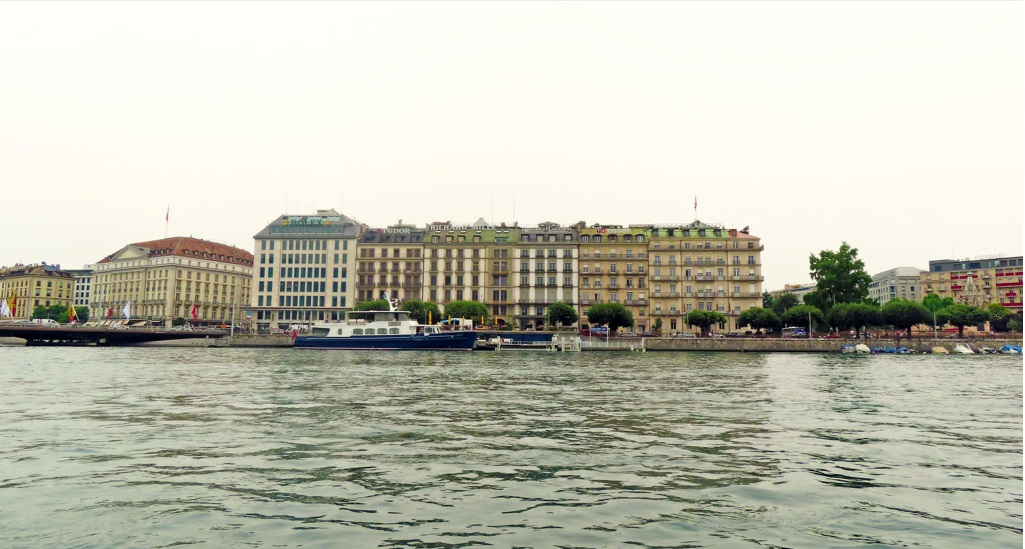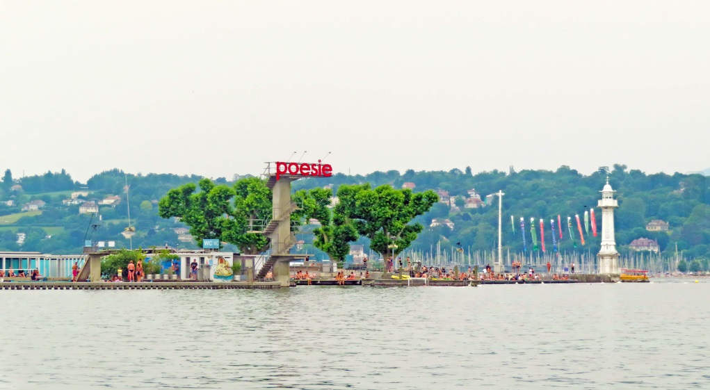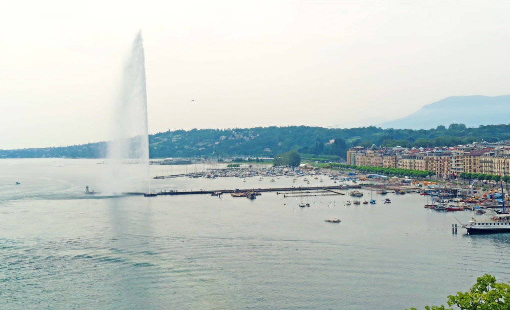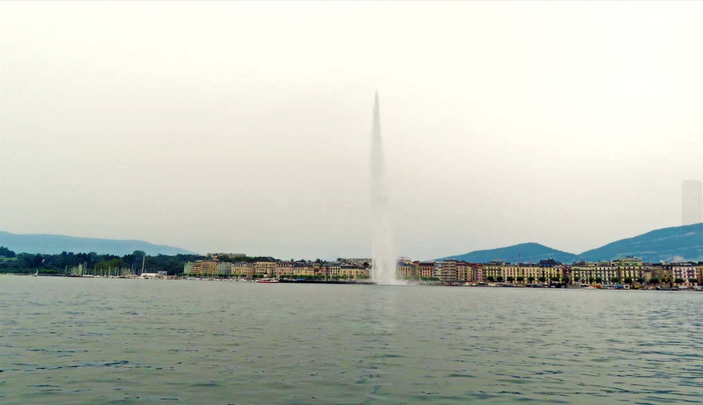 La mejor vista del chorro de agua se obtiene desde los Bains des Pâquis (8 minutos caminado), situado en un muelle a pocos metros de la Fuente Jet d’Eau, donde todo Ginebra (Geneve) se reúne en verano para bañarse y en invierno para disfrutar de la un obligado fondue antes de entrar en el sauna. Lamentablemente eso no lo podré vivir, es verano. También desde la Noria.