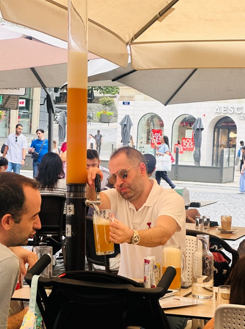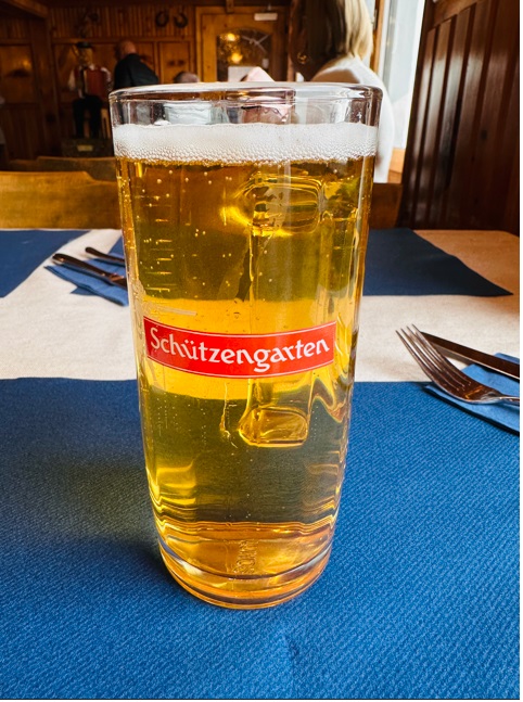 Si bien la cerveza que se consume en Suiza sigue procediendo en más del 60% de las cervecerías controladas por Carlsberg (Feldschlösschen) y Heineken (Eichhof y Calanda), se han establecido centenares de pequeñas y minúsculas cervecerías, que se enfrentan a las gigantescas redes de las empresas multinacionales. Y claro seguimos degustando vino, las variedades de uva más empleadas para la elaboración de los vinos son la Pinot Noir, Gamay, Merlot y la Chasselas. Esta última es la que más me gusto y pedí, son blancos secos y afrutado. Cabe mencionar que la edad mínima que permite beber a una persona es de 16 años, con los que se puede tomar cerveza y vino; con 18 años, licores.