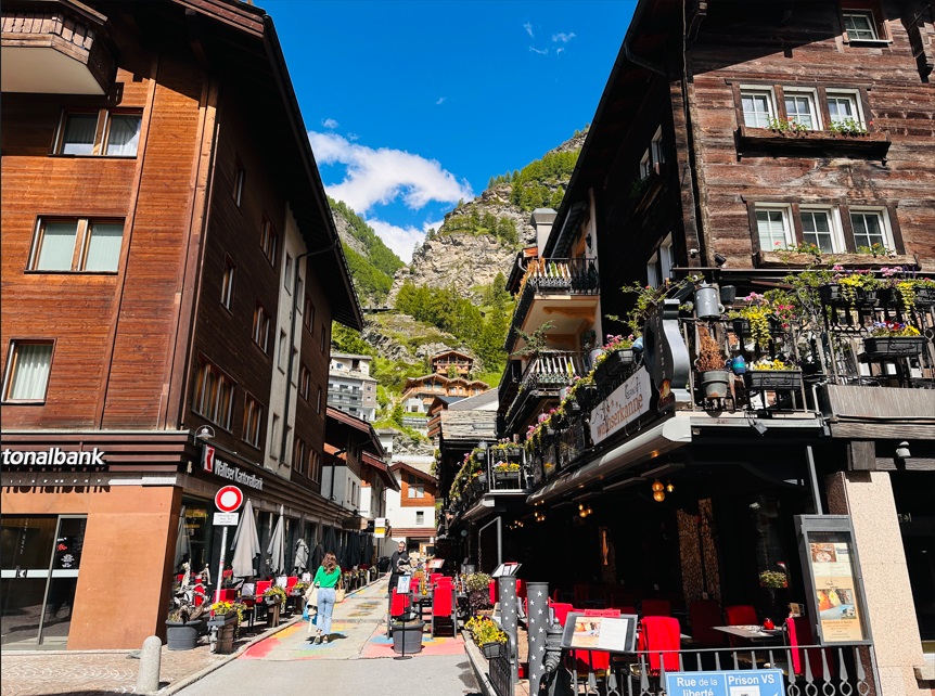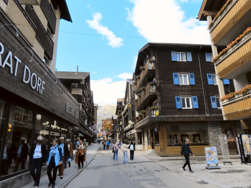 Zermatt está ubicado a los pies del Matterhorn (Monte Cervino), cuando llegas es algo alucinante. Su desarrollo turístico está estrechamente vinculado con la montaña más famosa del mundo. Es un centro de vacaciones libre de automóviles, se permite ahora el uso de autos eléctricos, esta ciudad ha logrado mantener su carácter originario y que ofrece posibilidades de paseos y excursiones casi ilimitadas.