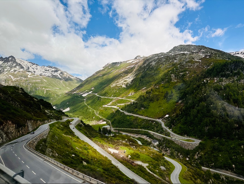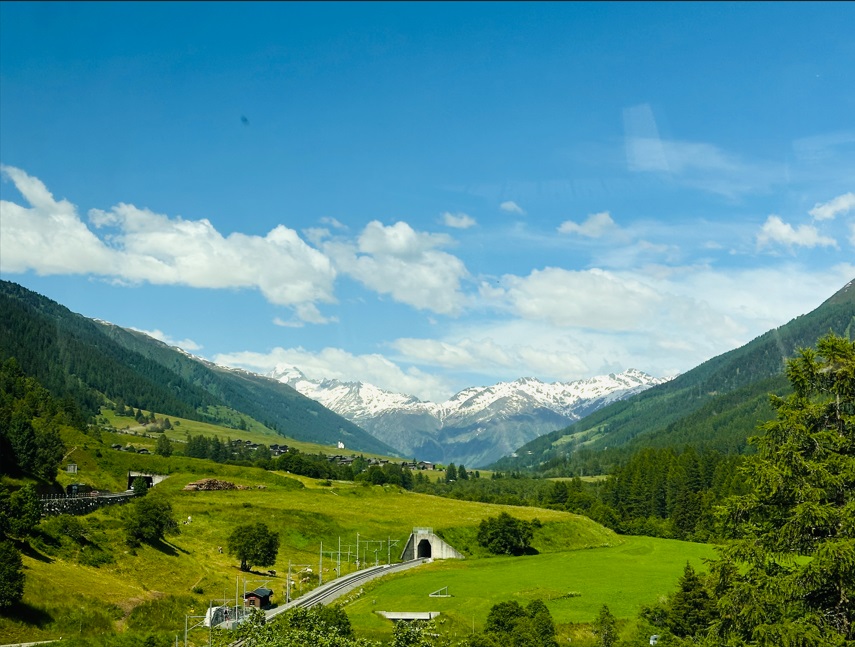 Ya listos para continuar hacia Interlaken. Interlaken es un punto de partida ideal para viajar por el Oberland bernés y es líder mundial en deportes de aventura. Sus lagos, sus pueblos de montaña y los Alpes berneses con sus imponentes glaciares atraen a visitantes de todo el mundo. Todo ello accesible a lo largo del año por ferrocarril, carretera y funicular. El camino es increíble, no puedes creer que vas pasando por esos puentes y ver esas montañas con nieve.