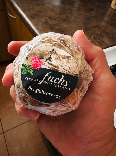 Al degustar la gastronomía típica de Zermatt e Interlaken, pude tener mi experiencia con algo único en Zermatt, se trata de un pan guía de montaña, elaborado con una antigua receta con manzanas frescas, higos, nueces, pasas sultanas, canela, cacao y una mezcla de harina de alto secreto. Es apto para veganos, es una exquisitez. Tuve mi primer encuentro con el chocolate suizo, que es otro producto famoso internacionalmente en la cocina de Suiza. En concreto, la primera vez que se preparó el chocolate con leche fue en Suiza.