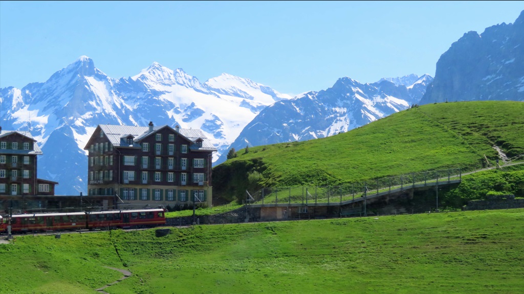 Aquí se hace una parada y desde allí se toma el tren de montaña, este es el tramo desde Lauterbrunnen hasta Gimmelwald con parada en Kleine Scheidegg, el destino final será el Jungfrau, Patrimonio de la UNESCO.