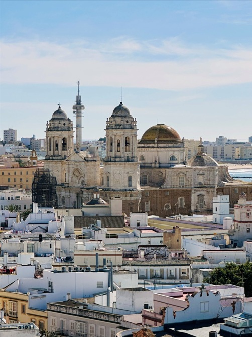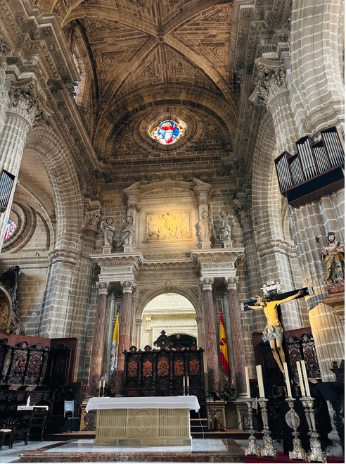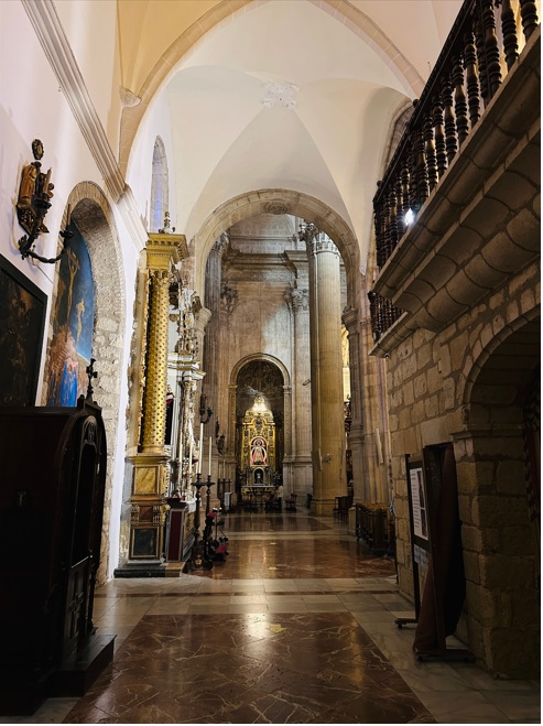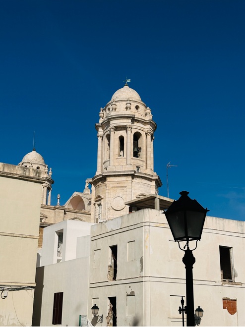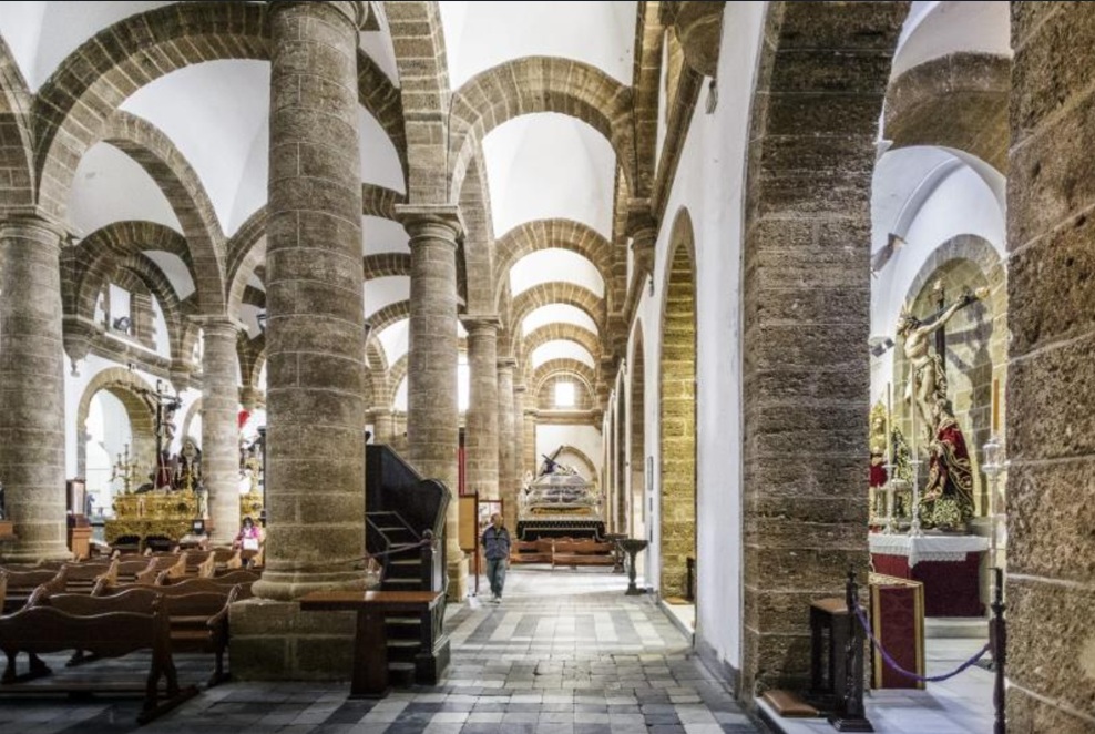 En el interior observarás numerosas columnas corintias y hasta 16 capillas entre las que destacan la de San Servando y San Germán, patronos de la ciudad, y la de San Sebastián. Otros imprescindibles del interior son el altar mayor, un precioso coro y una cripta, en la que están enterrados varios gaditanos célebres como el compositor Manuel de Falla. Después de la visita merece la pena subir a la Torre del Reloj para disfrutar de unas bonitas vistas de la ciudad.