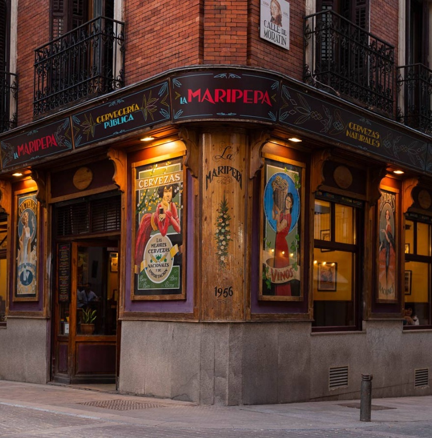 La Maripepa. Reabierto en Marzo de 2021 como Cervecería Musical especializada uno de los bares más clásicos del Barrio de las Letras en Madrid. Fácilmente reconocible por su fachada con cartelera de especialidades hecha a mano y un sugerente interior inspirado en los pubs británicos, el modernismo francés y el casticismo de Madrid. La Maripepa dispone de 14 grifos de cerveza, una extensa carta de vermús y una selección de vinos naturales, sin descuidar otros fermentados como sidra o hidromieles o destilados como el whiskey.