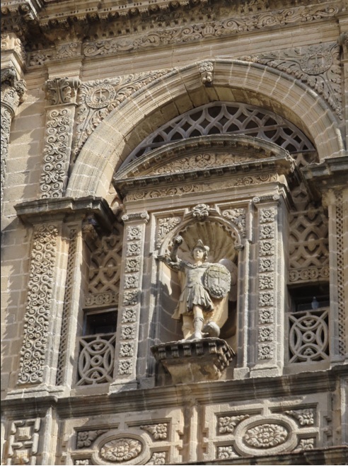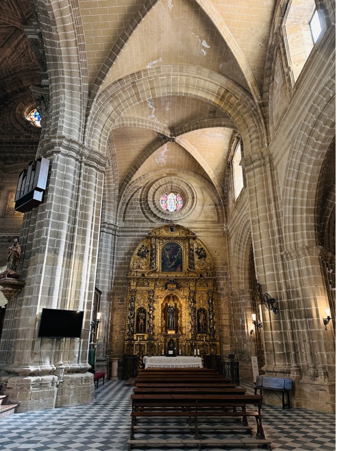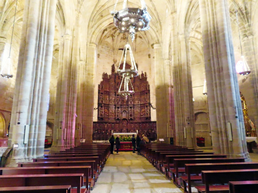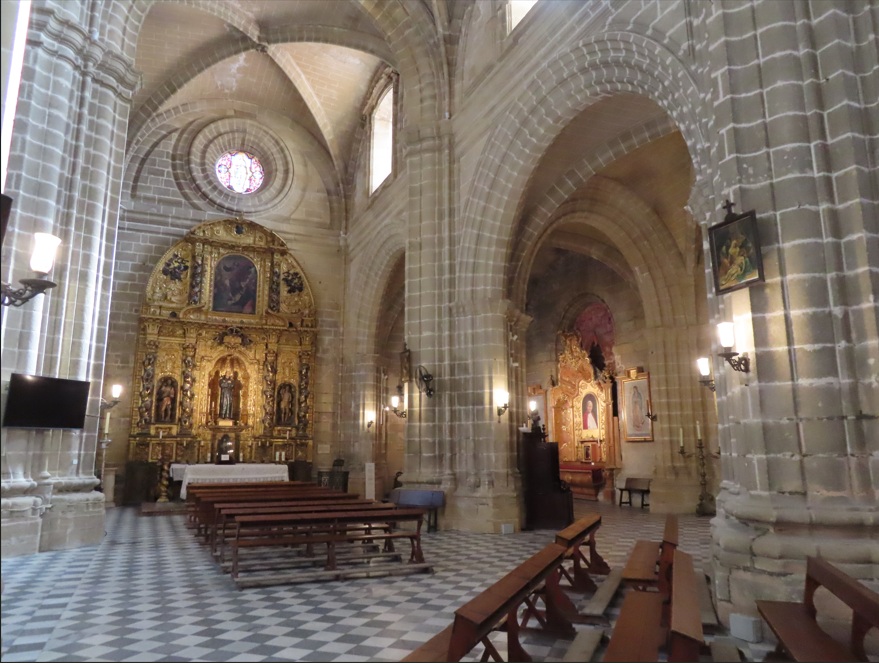 Iglesia de Santiago de los Caballeros. Bajando por la calle del Maestre pasarás por delante de la Torre del Socorro y llegarás en pocos minutos a la Iglesia de Santiago de los Caballeros, ubicada fuera de las murallas. Esta iglesia del siglo XII, aunque en el XVI se restauró incorporando elementos del Renacimiento, destaca por su sobrio exterior con dos magníficas portadas que contrastan con la belleza del interior con varias bóvedas de crucería y un precioso retablo mayor culminado con la imagen de Santiago Apóstol. En uno de los laterales de la Plaza de Santiago se encuentra el Palacio de Godoy que asombra por su magnífica portada de estilo renacentista.