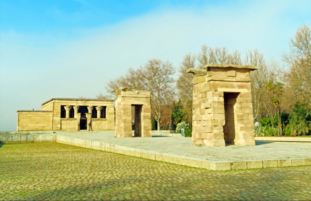 El Templo de Debod es un antiguo templo egipcio que data del siglo II a.C. y se encuentra en el Parque del Cuartel de la Montaña, cerca de la Plaza de España en Madrid. Este templo fue donado a España por el gobierno egipcio en la década de 1960 para evitar que quedara inundado tras la construcción de la presa de Asuán.