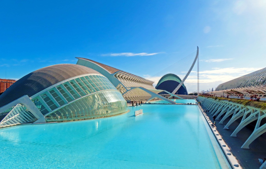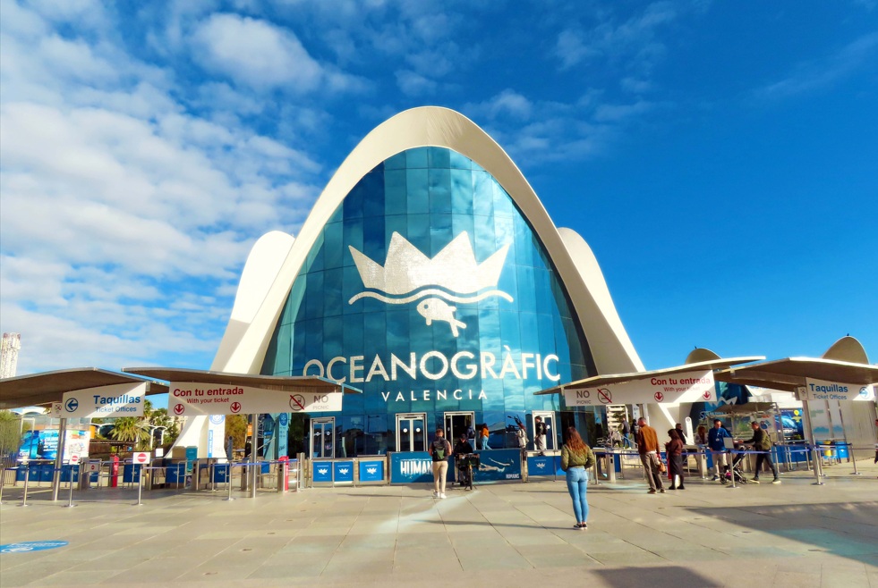 Obligado visitar la Ciudad de las Artes y las Ciencias. No está en el centro pero es uno de los lugares imprescindibles de la ciudad. Se sitúa en uno de los laterales del jardín del Turia y aunque visitarla te llevará por lo menos dos horas, esto sin entrar a los tres edificios, yo sólo voy a entrar al Hemisfèric. Su forma ovalada es ya uno de los perfiles más característicos de la ciudad de Valencia. Diseñado por el arquitecto Santiago Calatrava, el Hemisfèric abrió sus puertas en 1998. Fue el primero en hacerlo de todos los edificios que integrarían la Ciudad de las Artes y las Ciencias. Todo un espacio destinado al conocimiento que completarían instalaciones como las del Oceanogràfic o el Museo de las Ciencias.