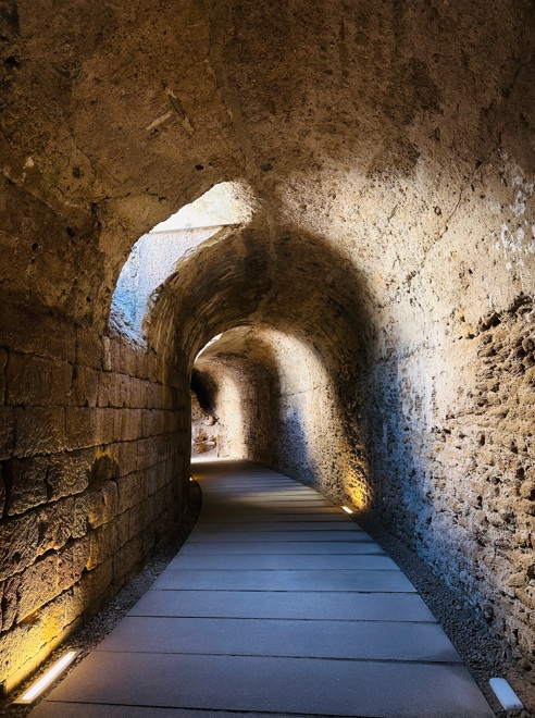 Teatro Romano de Cádiz. Se descubrió en el año 1980 en unas excavaciones arqueológicas destinadas a localizar el Castillo de la Villa. Hasta entonces solamente se habían visto algunas de sus galerías interiores sin identificar a que edificio pertenecían.