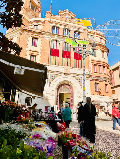Plaza de Topete. Conocida popularmente como la Plaza de las Flores por sus coloridos puestos repletos de perfumadas flores es uno de los lugares más llenos de vida y encanto de todo Cádiz. Esta alargada y peatonal plaza, presidida por el inconfundible edificio de Correos con su fachada de ladrillo rojo y bandas blancas, destaca por sus puntos de venta de flores a ambos lados que se llenan de turistas y locales