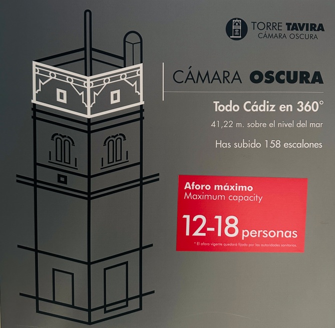 Además de disfrutar de las vistas panorámicas desde su terraza, es un buen ejercicio, ya que tiene un total de 173 escalones. En el interior de la Torre de Tavira, se encuentra la Cámara Oscura, un sistema óptico que refleja en una pantalla escenas del exterior a tiempo real. Estas torres con el paso del tiempo se han convertido en un elemento arquitectónico característico de Cádiz y entre las más destacadas