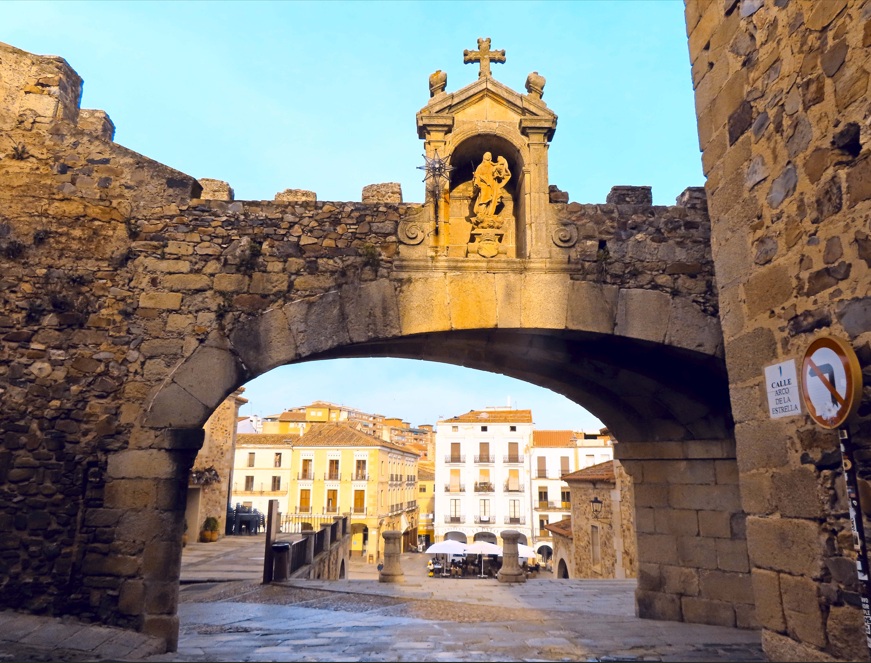 Arco de la Estrella. Al lado de la Torre de Bujaco se encuentra el Arco de la Estrella, puerta principal de entrada a la Ciudad Monumental de Cáceres. Este arco de piedra de estilo barroco, construido en el siglo XVIII por Manuel de Lara Churriguera, impresiona por su gran amplitud que permitía el paso de los carruajes al recinto amurallado y por el templete que alberga la estatua de la Virgen de la Estrella. Si eres fan de la serie de Juego de Tronos en este arco empieza por los escenarios que se rodaron en Cáceres, ya que esta ciudad se convirtió durante una época en Desembarco del Rey, la capital de los Siete Reinos.
