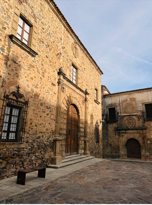 Palacio Toledo-Moctezuma. Después de cruzar el Arco de la Estrella y hacer una bonita foto de la Plaza Mayor, te aconsejo girar a la izquierda para llegar al fantástico Palacio Toledo-Moctezuma. Este edificio medieval de estilo renacentista fue construido en el siglo XV por la familia de los Toledo, cuyo blasón aparece en la fachada, hasta que a finales del siglo XVI se realizó una boda de un miembro de esta poderosa familia con una descendiente del emperador azteca Moctezuma II y se realizaron varias reformas.