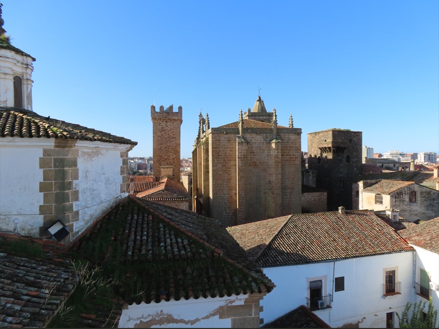 La Plaza de Santa María, presidida por la concatedral de Santa María la Mayor y centro neurálgico de la Ciudad Monumental de Cáceres. Fue levantada en el siglo XV, y cuenta con un estilo entre románico y gótico, siendo muy representativa del centro histórico de la ciudad. Allí te encontrarás con un retablo de cedro tallado del siglo XVI, así como tumbas y capillas. También te encontrarás con un museo eclesiástico, y unos hermosos murales que adornan el techo sobre el retablo. No puedes dejar de subir al campanario, puesto que desde allí tendrás las mejores vistas panorámicas de Cáceres.