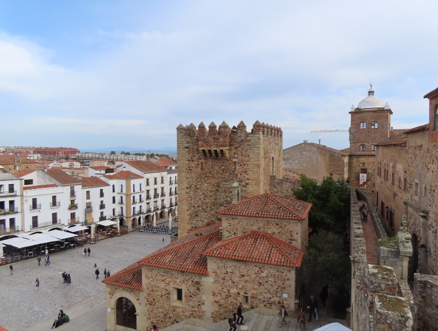 Para terminar la visita a la plaza puedes subir por las escaleras para entrar en la iglesia de San Francisco Javier, una construcción barroca del siglo XVIII y subir a una de las torres campanario desde donde tendrás unas magníficas vistas del conjunto monumental de Cáceres.