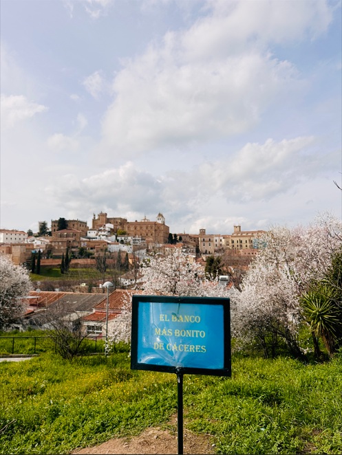 Mirador de Cáceres (El Banco). Después de cruzar el Arco de Cristo y el puente sobre el Arroyo de la Ribera, puedes subir por una carretera, dirección a la Ermita del Cristo del Amparo, hasta lo alto de un cerro que tiene una de las vistas más destacadas de Cáceres. En este elevado punto de la ciudad también se encuentra un banco con la leyenda «banco más bonito de Cáceres» desde donde podrás disfrutarás de unas espectaculares perspectivas del centro histórico del que sobresalen las torres de la Iglesia de San Francisco Javier y las enormes dimensiones del Palacio de los Golfines de Abajo.