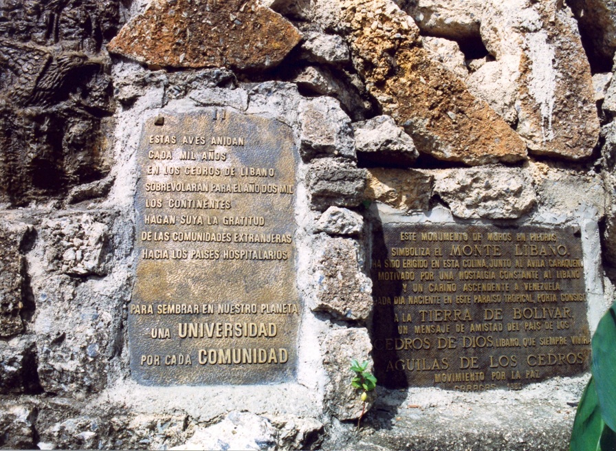 Monumento por la Paz en Caracas, Venezuela. Es un homenaje a la paz y la reciclaje, construido por el Dr. Farid Mattar en 1963. Este monumento ecológico está hecho de piedras y restos de construcción de la ciudad de Caracas, cada piedra colocada en el nombre de cada niño recién nacido y niña de Venezuela. Mattar, un inmigrante libanés, representó a Venezuela en la reunión internacional de la Unión Libanesa Cultural Mundial. El monumento se encuentra en las lomas de Colinas de Bello Monte, donde Mattar tiene su casa, y fue inaugurado en 1963. Es un templo de comprensión y entendimiento, simbolizando la unidad de razas y religiones.