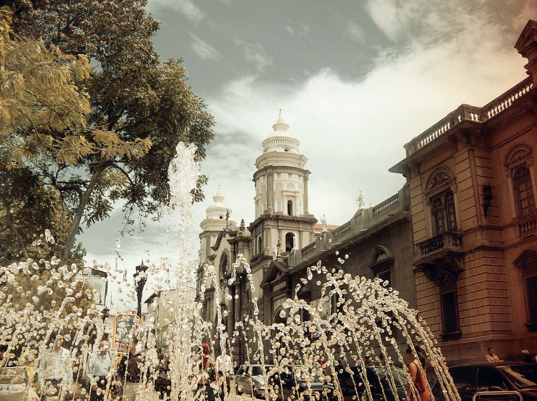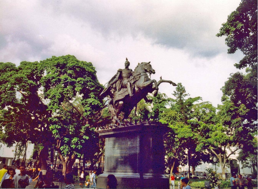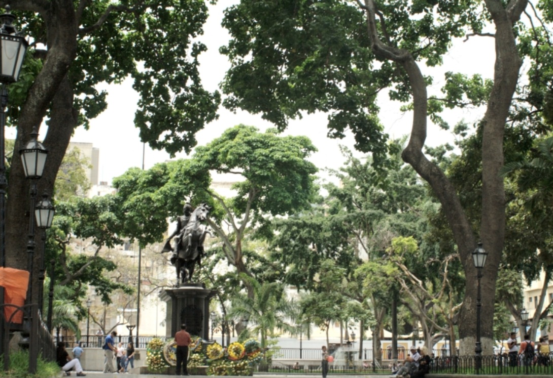 Visitamos el Centro de Caracas, los alrededores de la Plaza Bolívar. La plaza Bolívar de Caracas es uno de los espacios públicos más importantes y reconocidos de Venezuela. Se encuentra ubicada en el centro histórico de esa ciudad, creada Santiago de León de Caracas en 1567. El 7 de noviembre de 1874 es inaugurada la estatua ecuestre del Libertador Simón Bolívar, en el centro de la plaza, con el repique de campanas y 21 cañonazos. La obra del escultor italiano Adamo Tadolini es una réplica de la estatua de la Plaza Bolívar de Lima, en Perú, realizada por la Fundición Müller.