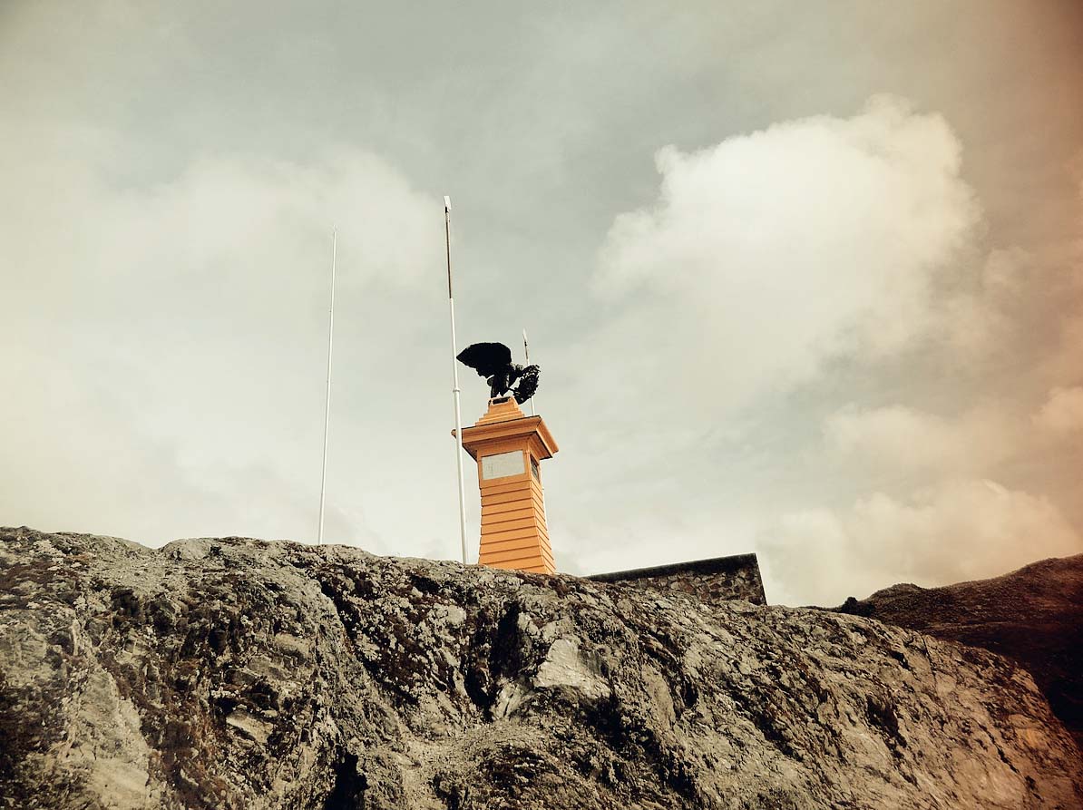 Fuimos al norte encontrando la Ruta de Las Cumbres, tomamos la carretera trasandina, que adentra en El Páramo de Santo Domingo y llegamos hasta El Pico El Águila. Collado del Cóndor o Pico El Águila es un monumento e hito como punto a mayor altura de la carretera Trasandina (troncal 7) en el estado Mérida, Venezuela. Es un punto de parada obligatorio para quienes transcurren por el Páramo Merideño. Punto más elevado del país (4,118 metros por encima del nivel del mar), allí se levanta el monumento a la Gloria del Libertador, para inmortalizar la gesta de su Compañía Admirable. El monumento conmemora el paso del Libertador Simón Bolívar por los Andes en 1813 en la conocida como "Campaña Admirable". El monumento fue esculpido por el colombiano Marcos León Mariño en el año 1925, representa un Cóndor Andino con las alas abiertas hecho en bronce.