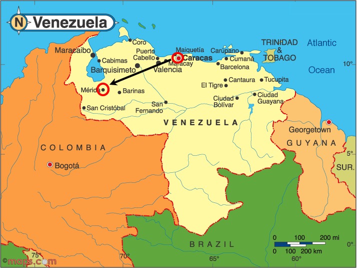 Nuestro viaje, sencillo. Visitar la capital, Caracas y luego ir a Mérida (anteriormente conocida como Santiago de los Caballeros de Mérida) es la capital de Estado Mérida.