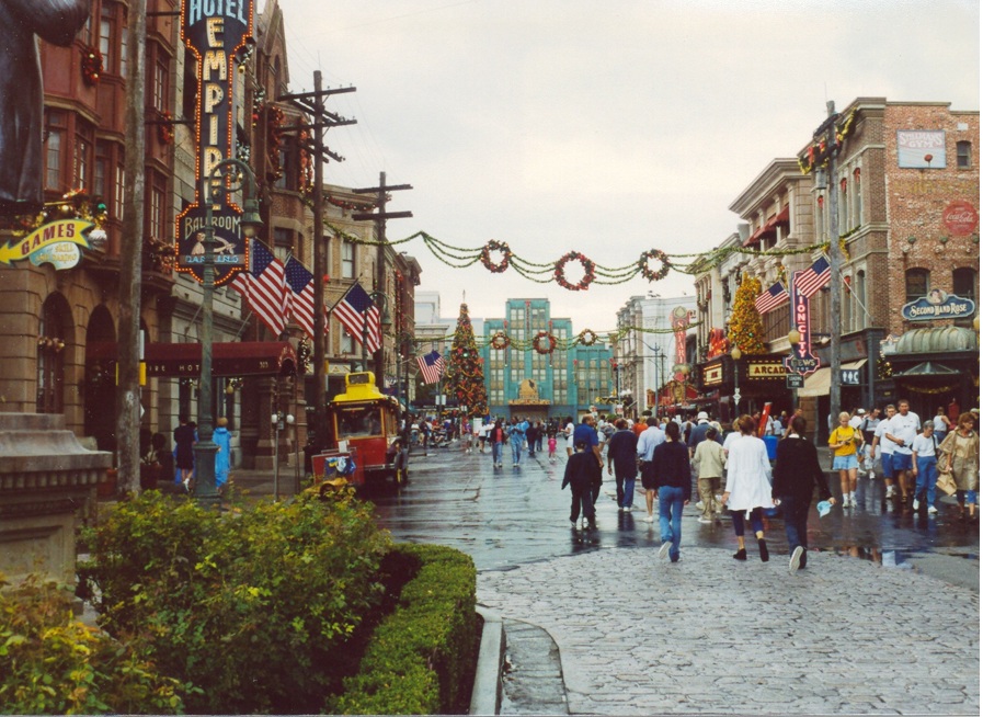 Deberíamos comenzar con Terminator 2 3-D, Arnorld regresa, usando este personaje de la famosa película, incluyendo a Linda Hamilton, este espectáculo combina la cinematografía en 3D y graficas de computadoras en digital, su duración es de 12 minutos. Seguimos ahora al Back to the Future... The Ride, este paseo esta basado en la popular película con Michael J. Fox, es un simulador de movimiento, solo pueden tomarlo 8 personas a la vez, te presentan escenas del futuro gracias a unas pantallas tipo I-Max, tiene un gran sentido de la perspectiva, dura unos 5 minutos. Trataremos de seguir en contra de las manecillas del reloj.