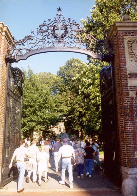 La Universidad de Harvard (en inglés: Harvard University) es una de las instituciones educativas más prestigiosas de Estados Unidos y del mundo. Se considera la más antigua de los Estados Unidos de América. Fundada el 8 de septiembre de 1636 como New College en Cambridge (Massachusetts), fue rebautizada el 13 de marzo de 1639 en honor a John Harvard, uno de sus principales mecenas. Aunque el Ricky, mi hermano, el que se ve entrando, no pudo terminar sus estudios universitarios, se puede dar el bote, de haber atravesado el famoso portón.